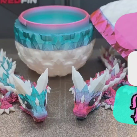 “Crystal Baby Dragons with Egg – Articulated 3D Printed Collectible – Dual Pink - Blue with White Theme”