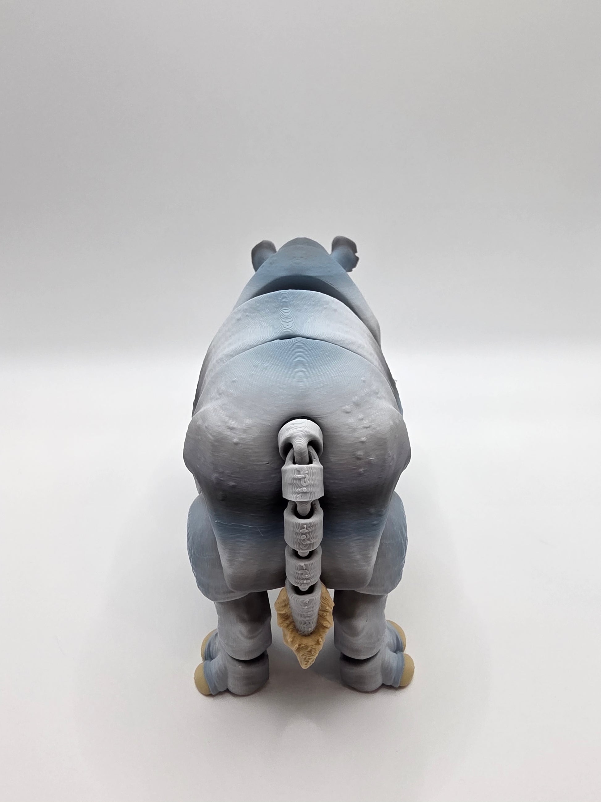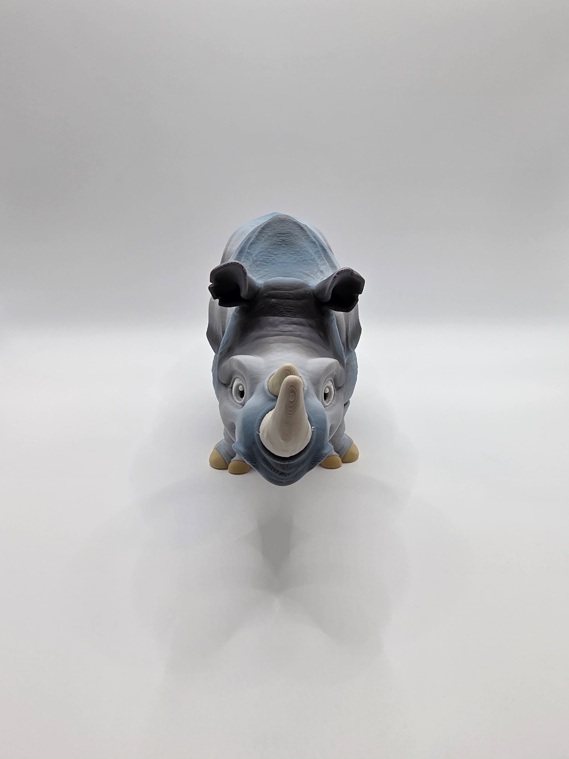 Meet the tiny tank your desk has been missing! This fully articulated 3D printed rhino is a bold, charming, poseable companion that brings personality to any space. With flexible joints and a chunky, expressive design, this rhino can be posed charging, lounging, guarding your workspace, or striking a majestic stance.